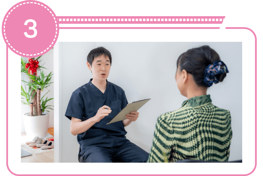 当院では、カウンセリング(お身体の状態確認)や検査を通じてお身体の状態を丁寧かつ正確に把握し、症状の原因を見極めたうえで施術を行っています。